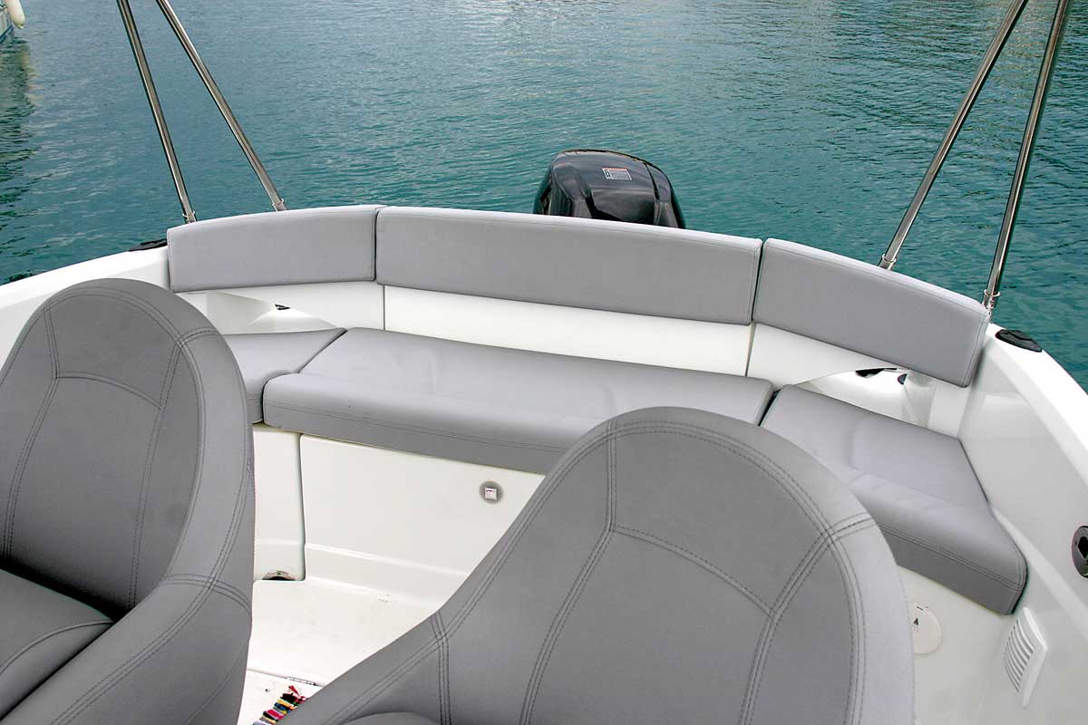 En mode navigation, la grande banquette arrière permet d'accueillir trois à quatre personnes confortablement. Les sièges bolsters offrent la possibilité de piloter semi-debout.