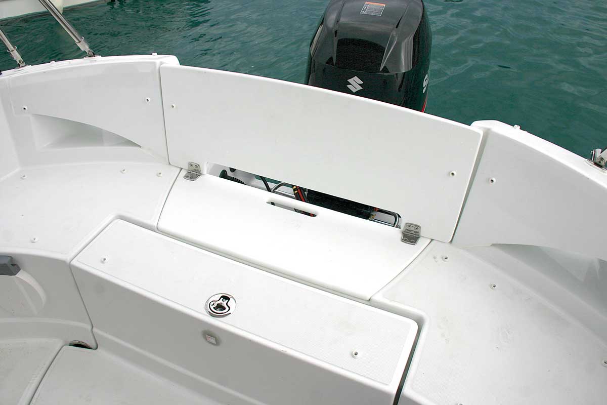 Le système de tableau arrière basculant, afin de pouvoir remonter le propulseur complètement (mode parking), a permis de gagner 50 cm d'espace cockpit.