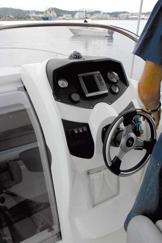 Plutôt esthétique et moderne, la planche de bord, avec son volant sport et sa barre hydraulique. L'instrumentation est comprise dans le prix.