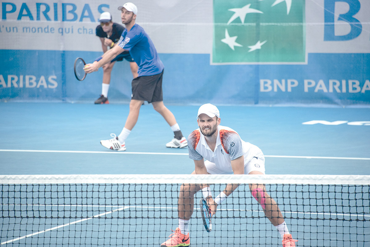 En finale du double, vendredi soir, la paire germano-française Tim Puetz - Hugo Nys (au filet) s’est imposée en deux sets (6-2, 6-2) face à l’Espagnol Jaume Munar et au Colombien Alejandro Gonzalez.