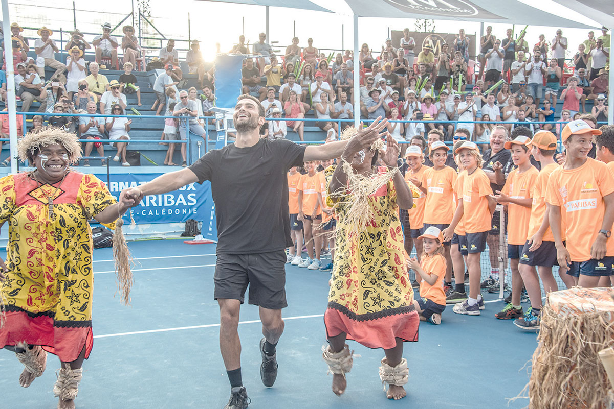 Le vainqueur du tournoi, Noah Rubin (201e), ici lors de la remise des trophées, samedi en fin d’après-midi, a été accueilli par les danseurs de la troupe We Ce Ca.