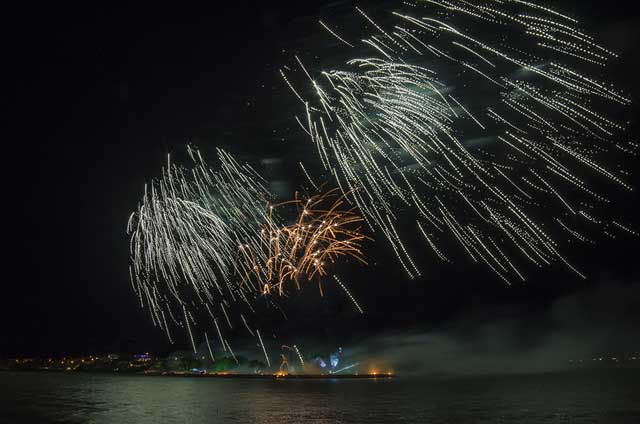 C'était la foule des grands soirs, dimanche, sur le pourtour de la baie de Sainte-Marie, mais aussi dans les rues et sur les collines de Nouméa pour assister au premier feu d'artifice tiré depuis l'îlot artificiel. Un festival pyrotechnique de premier plan soutenu par une bande-son et un jeu de lumières à l'unisson. Le reportage complet dans notre édition de demain, mardi 3 janvier. Photos : Cyril Terrien / Texte : T.G.