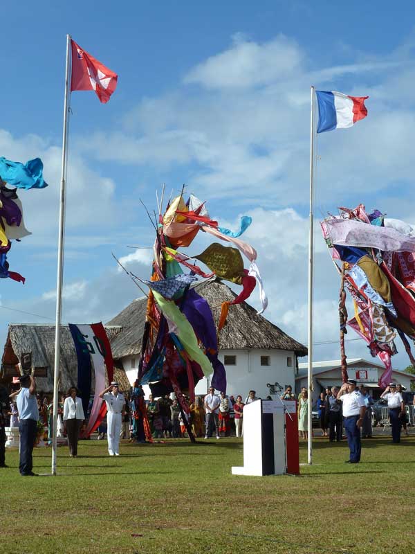 Wallis et Futuna en bleu-blanc-rouge ; le 07/29/2011 - 23:30Les couleurs de la France et de Wallis, une croix de Malte sur fond rouge, ont été levées simultanément au son de La Marseillaise, chantée par les enfants et suivie d'un chant dédié au Lavelua Kapeliele Faupala, « hau » du royaume d'Uvéa, qui avait reçu MPhoto Henri Lepot