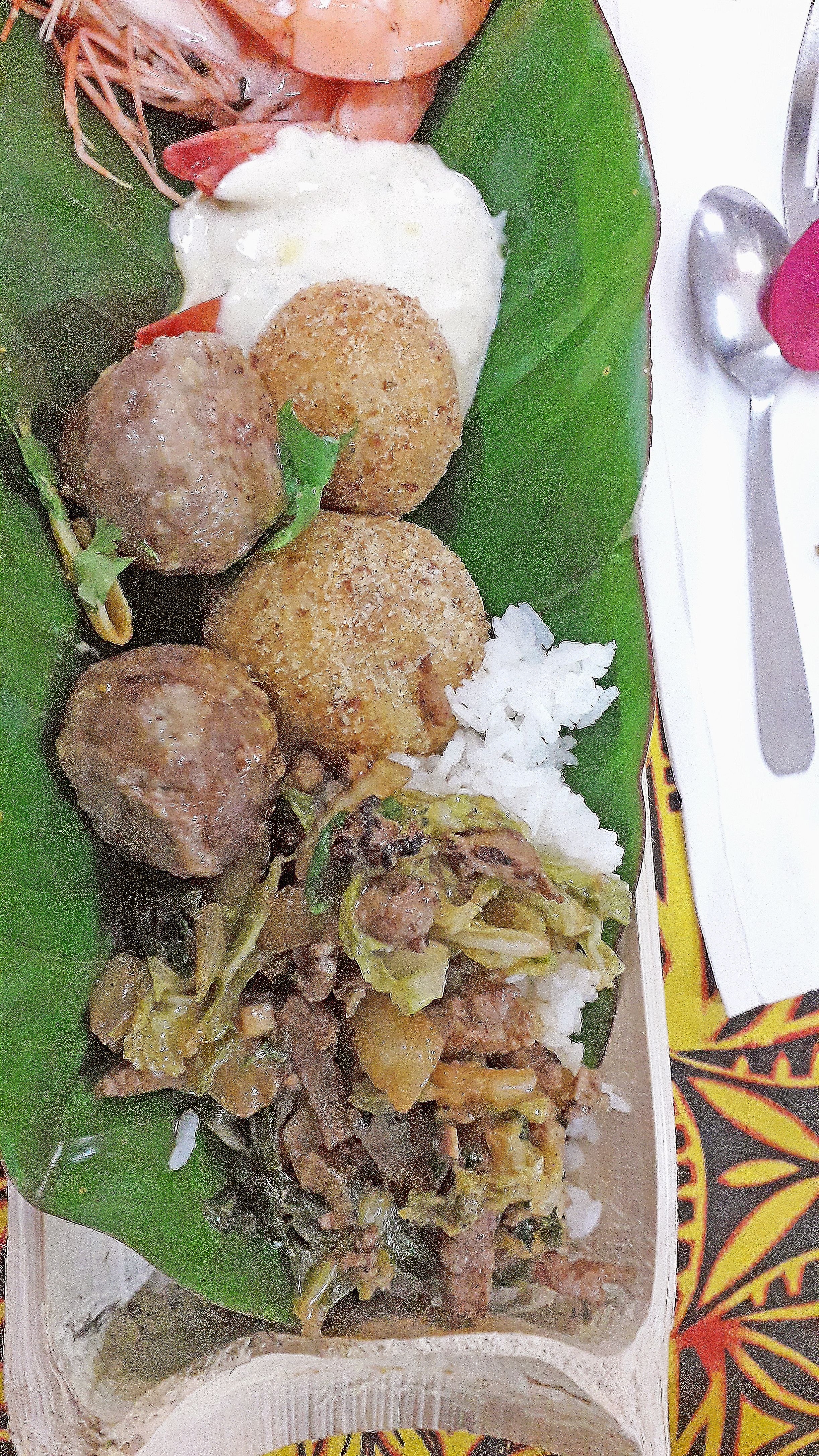 Les « assiettes » étaient confectionnées en bambous dans lesquels était glissée une feuille de cordyline où reposaient les aliments.