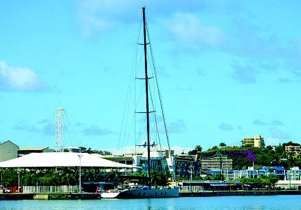 Il est apparu hier matin sur le quai Ferry. Un autre roi des mers vient d’accoster à Nouméa. Il s’agit du Skade, un voilier de 46 mètres qui fait escale. Hier, l’équipage était en train de tout préparer pour accueillir un occupant... dont l’anonymat a été préservé. Photo Thierry Perron