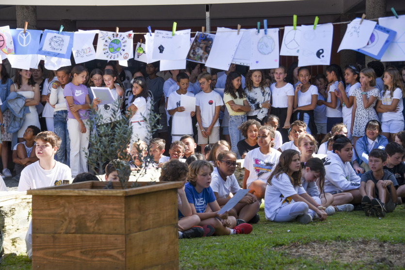 Mercredi matin, les élèves du collège Saint-Joseph-de-Cluny ont célébré la Journée internationale de la paix. Ils ont décoré la cour de dessins et de textes, ils ont chanté en chœur Imagine, de John Lennon, et symboliquement planté un petit olivier, qu'un diacre est venu bénir.