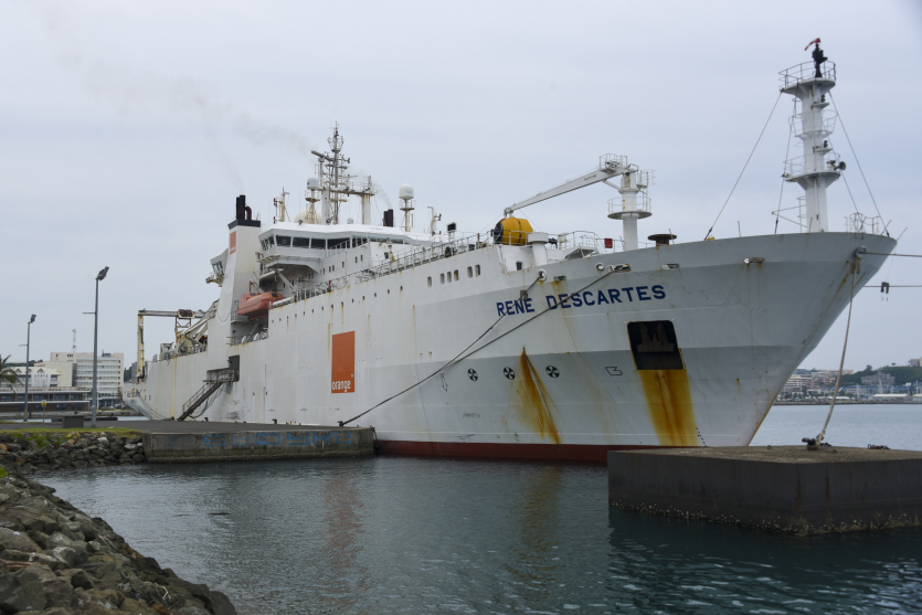 C'est un navire impressionnant qui s'est installé à Nouméa. Le René Descartes sera en charge de déployer le câble Gondwana 2 vers Fidji, qui va sécuriser l'internet calédonien.