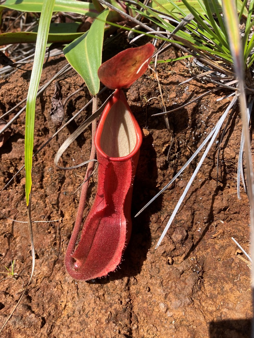 Si on l'appelle la gourde du mineur, grâce à sa forme tubulaire, Nepenthes vieillardii a de quoi faire frémir... Cette plante endémique, qui se laisse observer au parc de la rivière Bleue, se nourrit d'insectes.