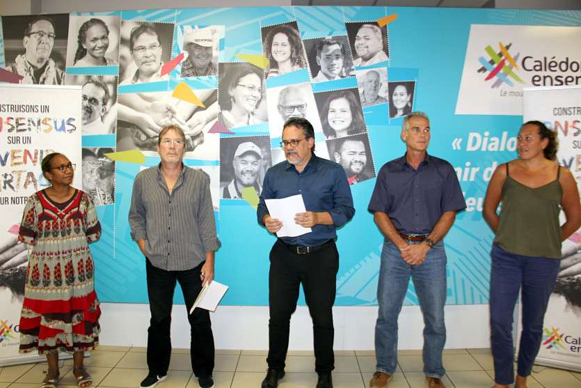 - Jean-Alexis Gallien-Lamarche | Crée le 05.03.2021 à 15h10 | Mis à jour le 05.03.2021 à 15h33ImprimerAutour d’Annie Qaeze, Manina Tehei et Joseph Manauté, Philippe Michel et Philippe Dunoyer ont tenu une conférence de presse, vendredi. Photo Jean-Alexis Gallien-LamarcheCalédonie ensemble s’est félicité de ce "consensus attendu" et pointe "des zones d’ombre persistantes sur les questions industrielles".
