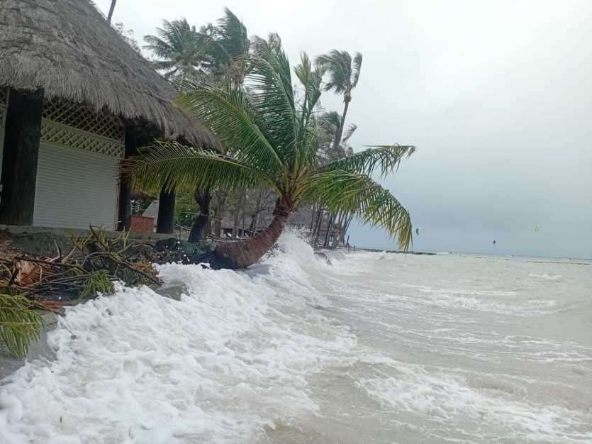 Ce dimanche 28 décembre déjà, la mer était particulièrement agitée, avec des vagues déferlant fort sur la plage du Méridien. Le drapeau jaune avait été hissé pour l’occasion. Photo Anthony Tejero