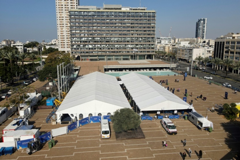 Un centre de vaccination installé au centre de Tel Aviv face à la mairie, le 31 décembre 2020 JACK GUEZ [AFP]MERCI DE VOUS IDENTIFIER