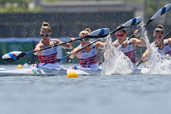 Bart (C1) et l'équipage féminin du K4 en demi-finales