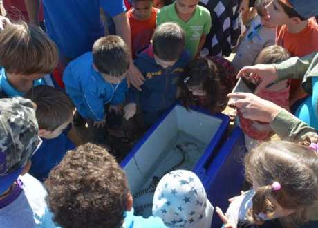 Trois jeunes requins léopards ont été relâches par l'Aquarium des lagons, mercredi 5 juillet 2017, sur la plage du Rocher à la Voile, à Nouméa. Le public est venu très nombreux pour voir ces mini squales prendre le large.