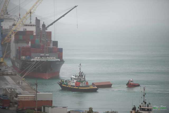 C'est une scène inédite qui s'est déroulée ce jeudi matin, sur les quais du port autonome. Un container a été emporté par les forts vents qui ont sévi pendant une bonne partie de la journée et s'est retrouvé à la mer. Il a fallu l'intervention de deux remorqueurs pour ramener ce container de 40 pieds (12 mètres de long) avant d'être pris en charge par les grues du port, comme le montre cette vidéo captée par Philippe Ferracci. Poussé par les vents, « l'objet flottant identifié » a traversé la grande rade.